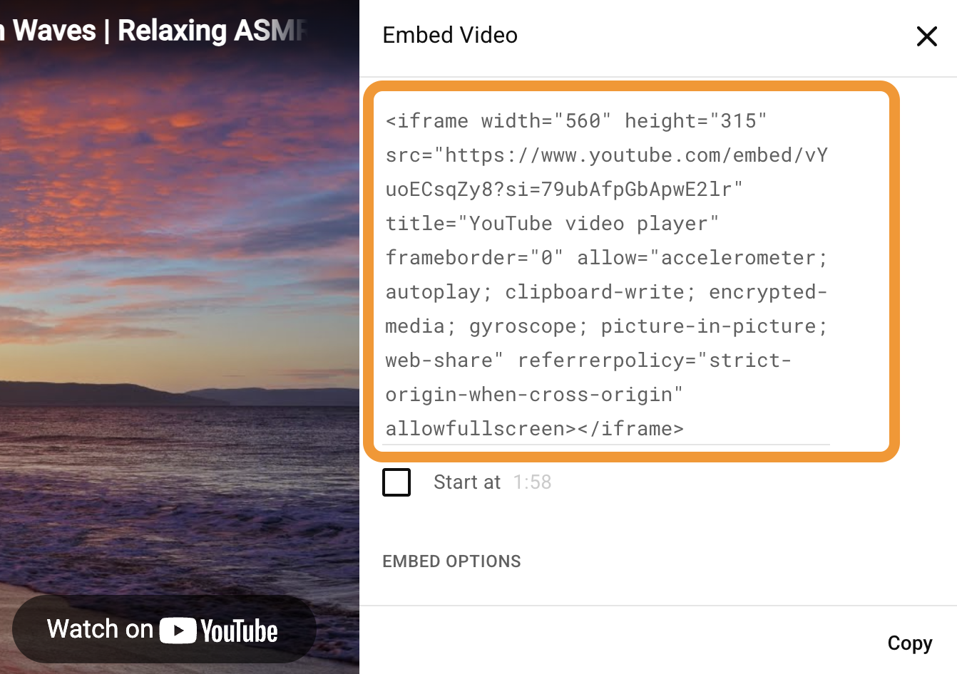 Copy the embed code from the field box.